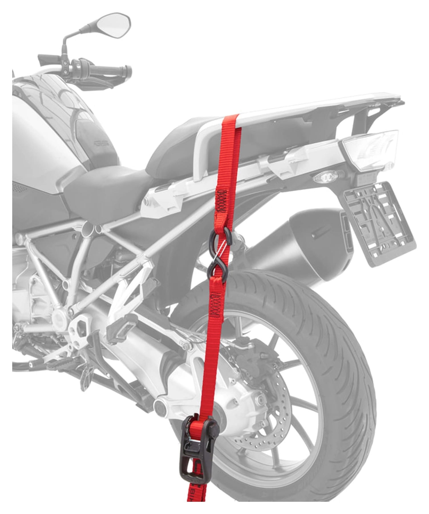 Do mocowania skuterów, średnich i ciężkich motocykli na busie bądź przyczepie. Acebikes oferuje zestaw 2 pasów Ratchet Premium, który zawiera on 2 sztuki bardzo praktycznych i wyjątkowo wytrzymałych pasów mocujących wykonanych z wysokiej jakości poliestru oraz gumowane haki w kształcie litery S. Zapobiega to na przykład uszkodzeniom punktów mocowania. Każdy pas poliestrowy o długości 200 cm i szerokości 3 cm ma obciążalność ok. 750 daN, umożliwiając bezpieczne i niezawodne mocowanie. Dzięki zintegrowanym pętlom można je przymocować do dowolnego punktu zaczepienia na motocyklu. 2-pak Acebikes *Ratchet Premium* jest wyposażony w praktyczną torbę i zapięcia na rzepy.